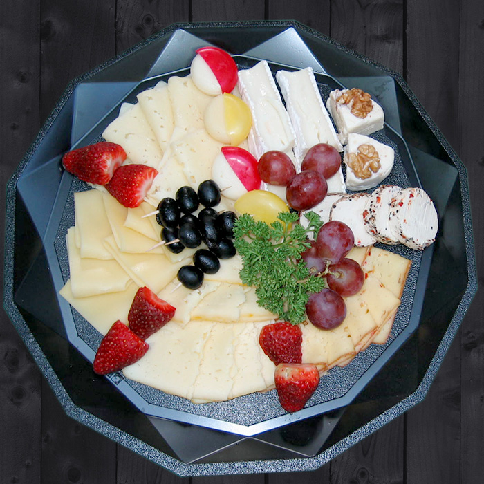 Käse-Plattemit Traungold, Rauchkäse, Bergbaron, Chillikäse, Rahmbrie, Nußkäse, Hartkäse belegt, garniert |